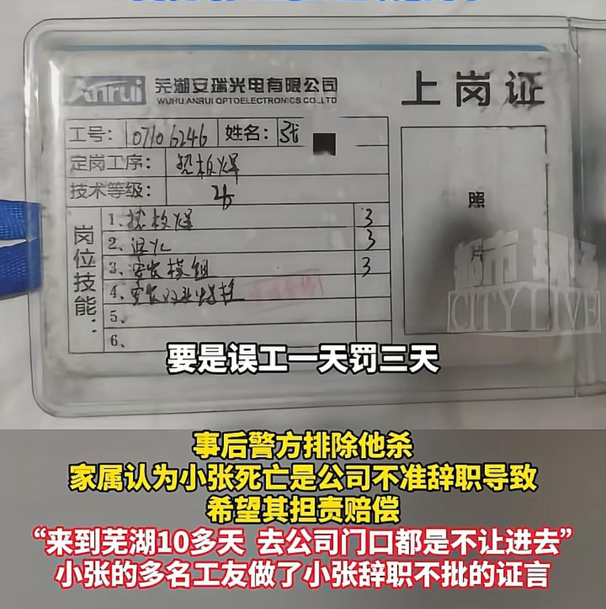 小张家属和工友的说法都是一样的,都说小张想要辞职,但公司不批,还要误工一天罚款三天的工资,如此算来小张如果要回家几天照顾母亲,一个月还得倒欠公司钱,这对于一个25岁,刚出生社会没多久的男生来说,真的是非常大的一件事。