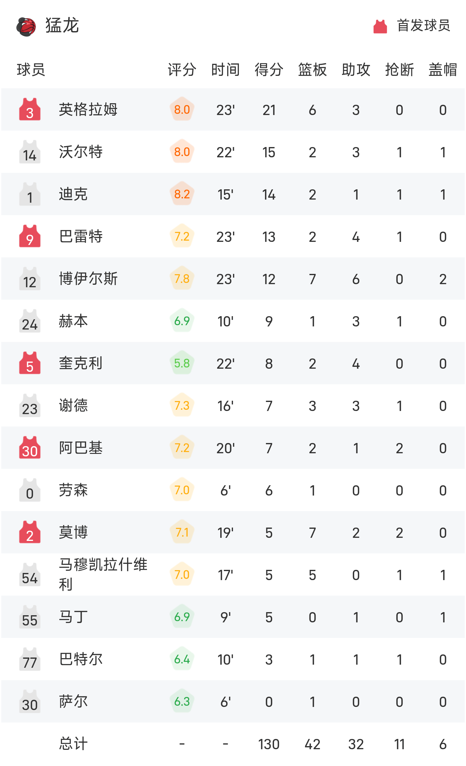 10月09日讯 25/26赛季NBA 季前赛,国王对阵猛龙。双方全场战罢,国王122-130不敌猛龙。英格拉姆砍下全场最高的21分6板3助,率领猛龙成功取胜。